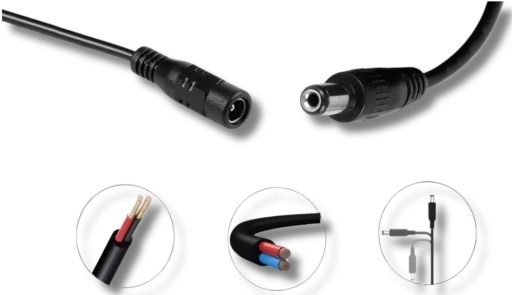 PRZEDŁUŻACZ KABEL przewód zasilający do kamer WIFI IP SIM 5M 5,5x2,1mm zapewnia dodatkowy zasięg do 5 metrów, co ułatwia instalację kamer w trudno dostępnych miejscach.