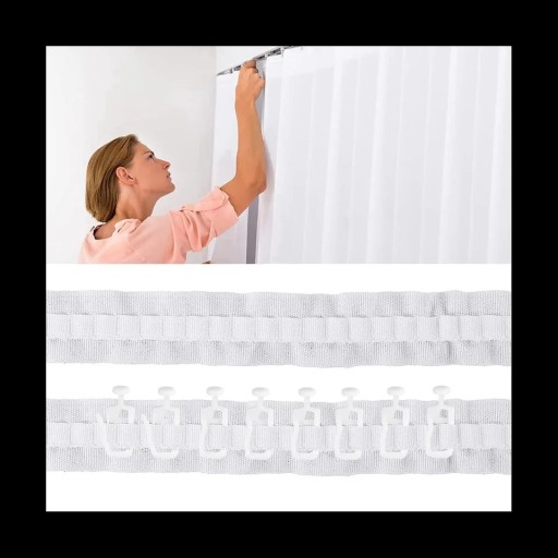 Agrafki należy wpiąć w taśmę do firan a następnie wsunąć w szynę karnisza.