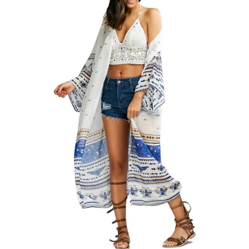 Modny wzór w stylu boho nada charakteru każdej letniej stylizacji, idealne uzupełnienie stroju plażowego jak i narzutka na codzienną stylizację.