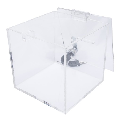 Przedmiotem aukcji jest SKARBONKA z bezbarwnej plexi (pmma- polimetaktylan metylu) o grubości ścianki 5mm i wymiarach (szerokość, głębokość i wysokość):
