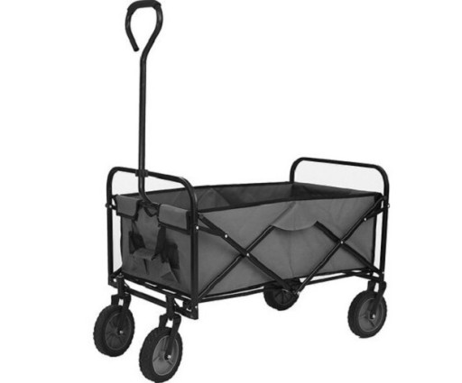 БОЛЬШАЯ складная транспортная тележка для пляжного сада СЕРАЯ с усиленным дном, 70 кг