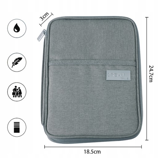 - Portfel paszportowy wykonany jest z wodoodpornego materiału nowej generacji, lekkiego, trwałego, wodoodpornego, odpornego na zmarszczki, amortyzującego, odpornego na rozdarcia, z ukrytym gładkim zamkiem błyskawicznym, doskonałe wykonanie.