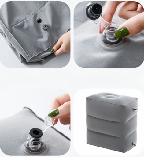 ✅Kompaktowy i przenośny: Dzięki możliwości nadmuchania, podnóżek jest łatwy do przenoszenia i przechowywania. Kiedy jest nienapompowany, zajmuje minimalną ilość miejsca, co czyni go idealnym towarzyszem podróży.
