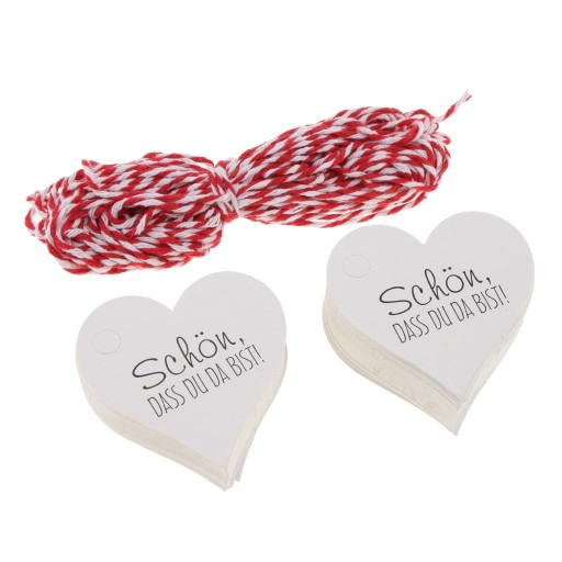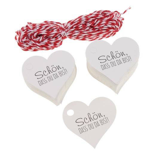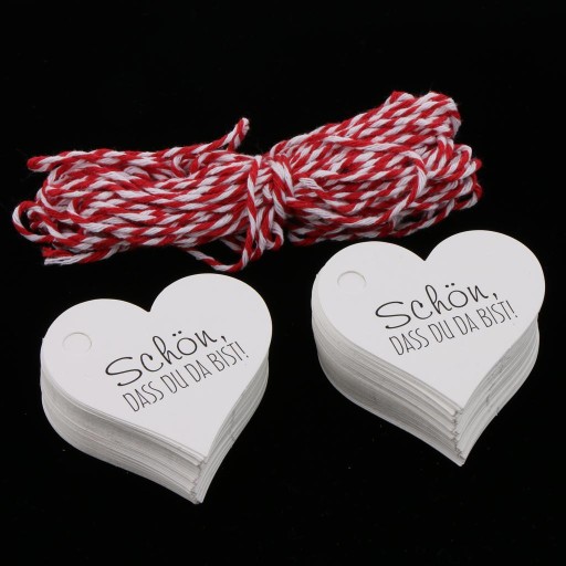 100 Sztuk schoen dass du da bist Papierowe Etykiety Prezentowe Tagi Ślub Dobrodziejstw Biały