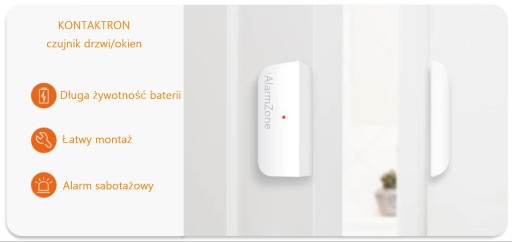 Czujnik składa się z dwóch części: nadajnika oraz magnesu. W momencie oddalenia od siebie dwóch części zostaje wywołany sygnał alarmowy. Czujnik cechują niewielkie wymiary oraz niskie zużycie energii. Dzięki prostej budowie czujnik zapewnia niezawodne działanie. Kontaktron należy montować na ruchomych częściach drzwi, balkonów, itp.