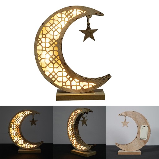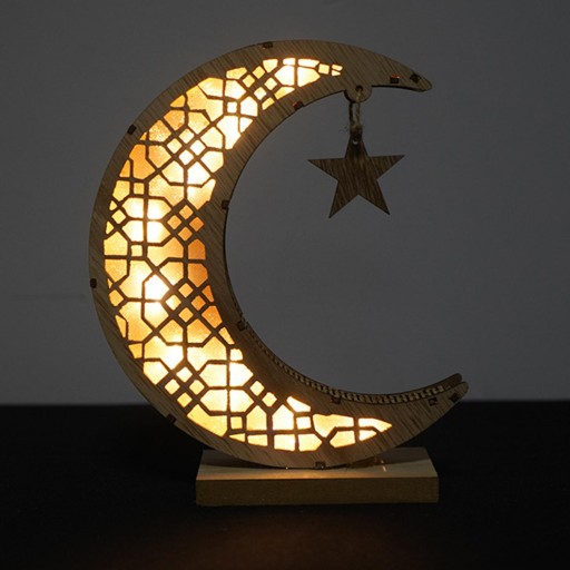 Рамадан Мубарак Огни Ид Украшения Лунной Форме Ночные Огни Деревянные