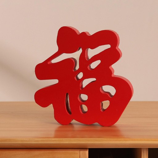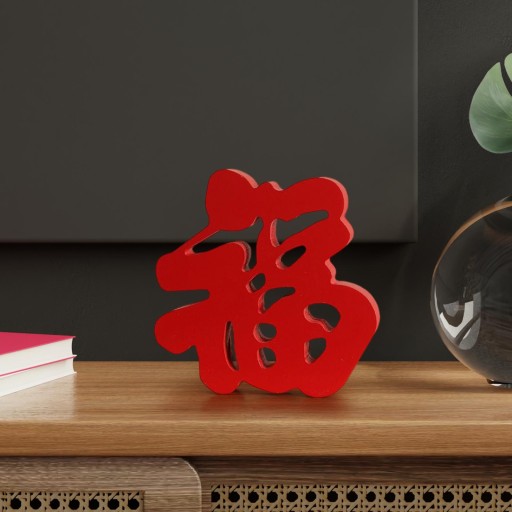 Chińskie szczęście Dekoracja na biurko Posągi Czerwony Fu Charakter Wystrój domu
