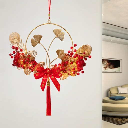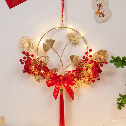 Wiosenny wystrój festiwalu wianek na drzwi lampa Led dekoracje na chiński nowy rok styl A