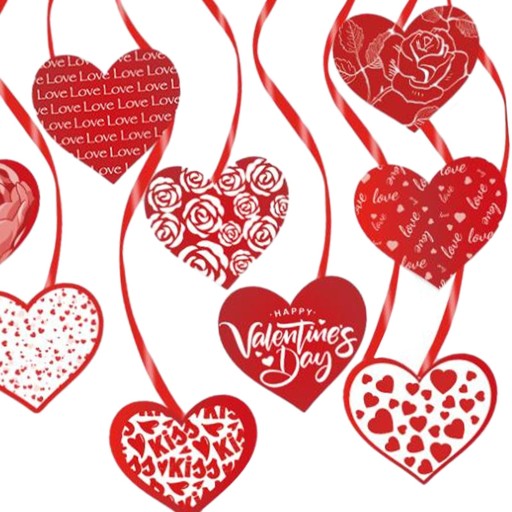 [Projekt]: To wisząca dekoracja w kształcie spirali na Walentynki, która doda miłości i romantyzmu do wystroju przyjęcia. Zawiera wzory w kształcie serca, które są idealne na Walentynki, rocznice, romantyczne wesela, przyjęcia zaręczynowe i nie tylko.