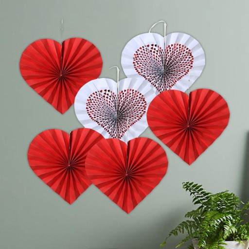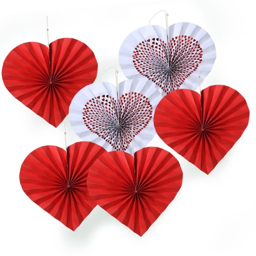 6 papierowych fanów walentynkowych serc