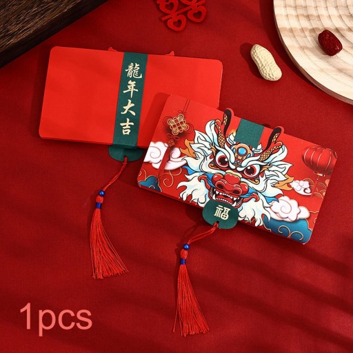 Поздравления с китайским лунным Новым годом в красном конверте на 2024 год, 2 слота для карт в стиле