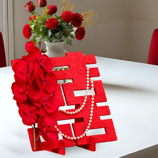 [Chińskie artykuły ślubne]: Produkt to dekoracja stołu w kształcie litery „Xi” 3D, popularna wśród narzeczonych podczas ceremonii ślubnych. To dodatek do wystroju salonu lub sali weselnej.
