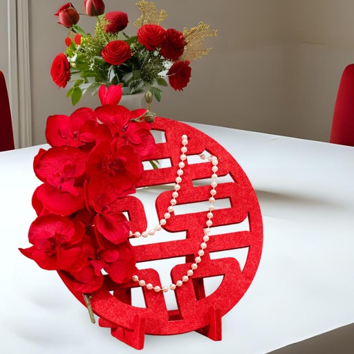 [Chińskie artykuły ślubne]: Produkt to dekoracja stołu w kształcie litery „Xi” 3D, popularna wśród narzeczonych podczas ceremonii ślubnych. To dodatek do wystroju salonu lub sali weselnej.