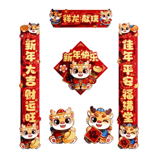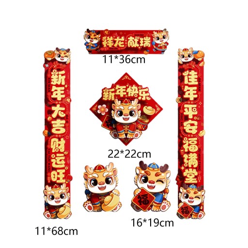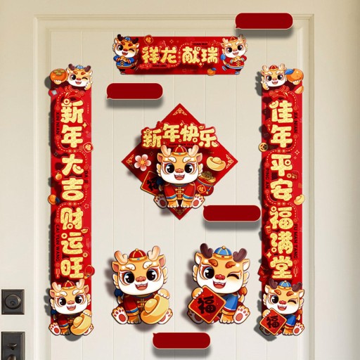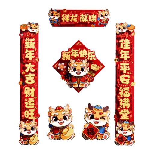 [Zestaw chińskich kupletów] W opakowaniu znajduje się 1 para sprzęgieł wiosennych, 1 partia pozioma, 1 ozdoba na drzwi, 1 para ozdób.