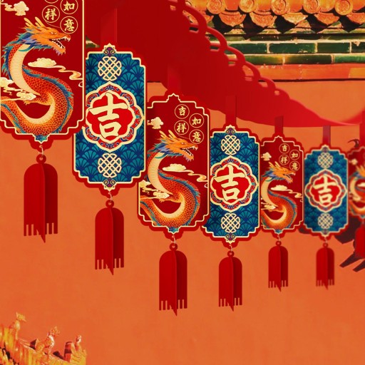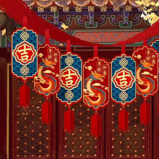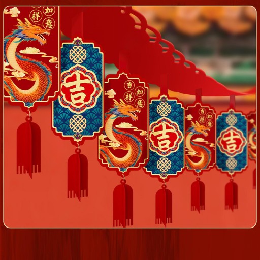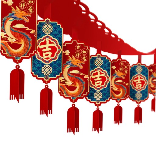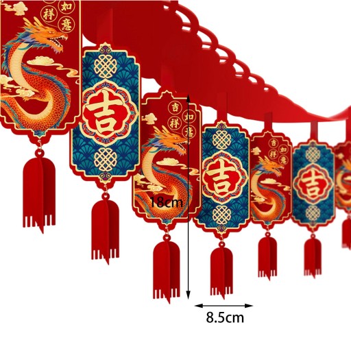 Pakiet zawiera: wiszącą girlandę festiwalu wiosny Dragon 2m, 6 wisiorków