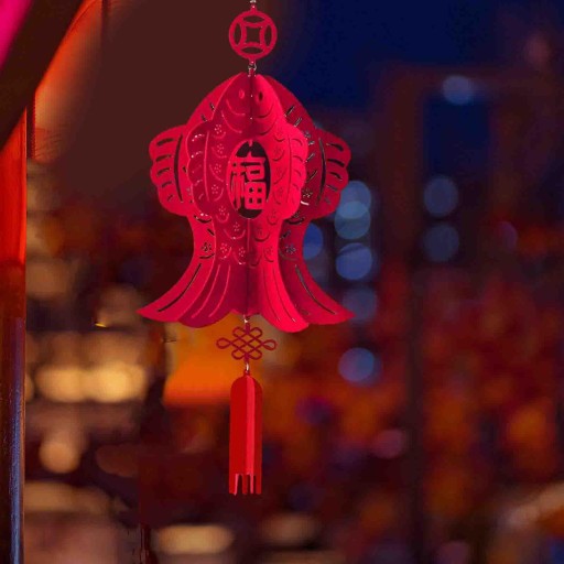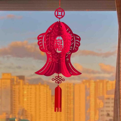 [Projekt]: Ta wspaniała wisząca dekoracja 3D DIY zawiera chińskie szczęśliwe postacie i wzory. Ma pustą konstrukcję, która wymaga montażu i jest wyposażona w frędzle.