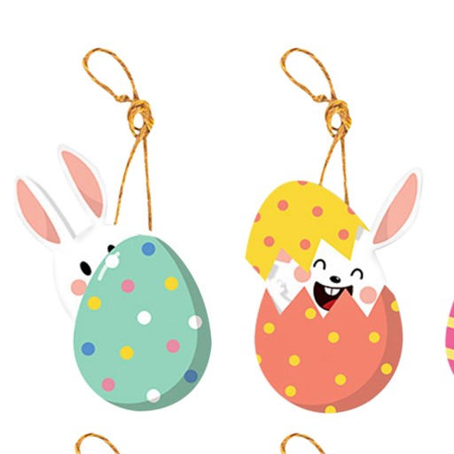 [Materiał premium] Wisiorki z jajkiem wielkanocnym wykonane są z białego kartonu, o delikatnej fakturze i lekkości.