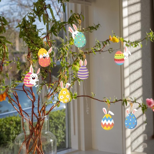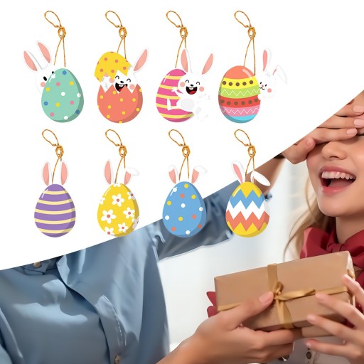 [Cenny pakiet] W opakowaniu znajduje się 8 wiszących dekoracji wielkanocnych z króliczkiem z liną, idealnych na dekoracje wielkanocne.