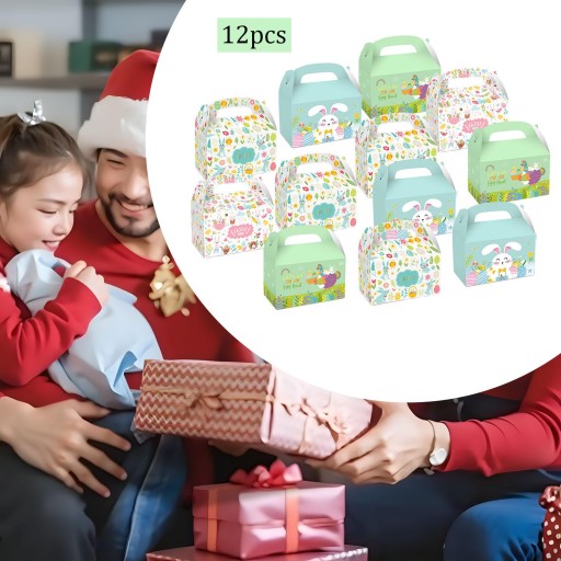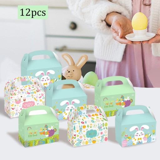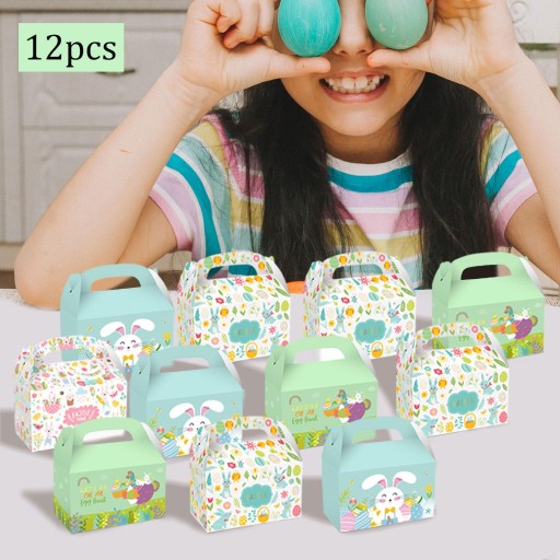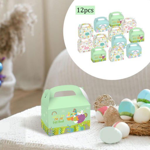 [Motyw wielkanocny]: Ten pakiet zawiera 12 pięknie zaprojektowanych pudełek upominkowych z zajączkiem wielkanocnym i kolorowymi jajkami. do pakowania prezentów wielkanocnych lub urodzinowych.
