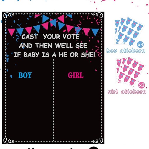 [Zabawna i klasyczna tablica ujawniania płci]: Ta tablica do głosowania na ujawnienie płci jest zabawą i pozwala ludziom decydować, czy dziecko będzie chłopcem czy dziewczynką przed wielką imprezą. Na naklejce możesz napisać imię dziecka.