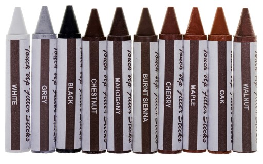 Duży zestaw do naprawy mebli i elementów drewnianych - zawierający markery i woski.