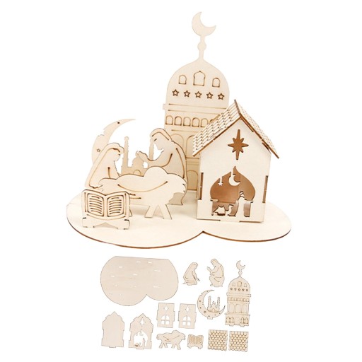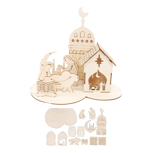 Eid Mubarak Drewniana ozdoba 3D Zamek Puzzle na półkę w pokoju domowym