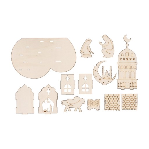 [Projekt] Drewniane ozdoby zostały zaprojektowane z tradycyjnymi elementami Eid Mubaraka, atrakcyjne i piękne.