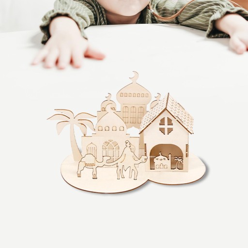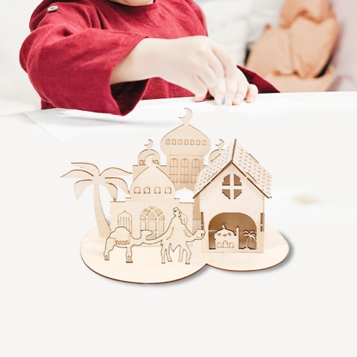 Eid Mubarak Drewniana ozdoba 3D Zamek Puzzle na półkę w pokoju domowym