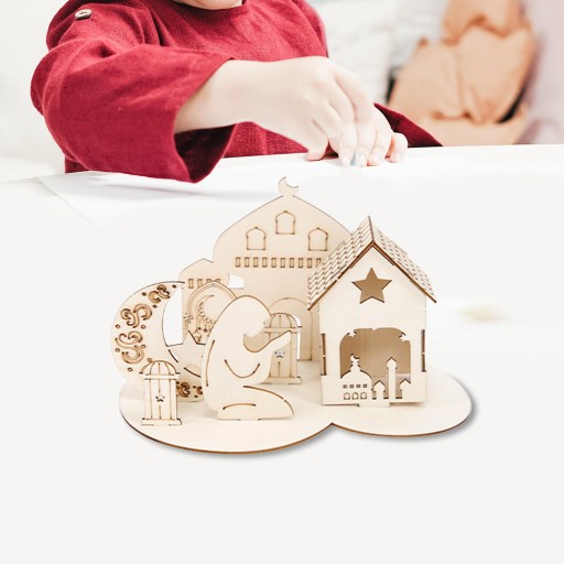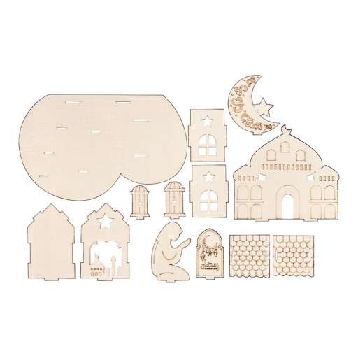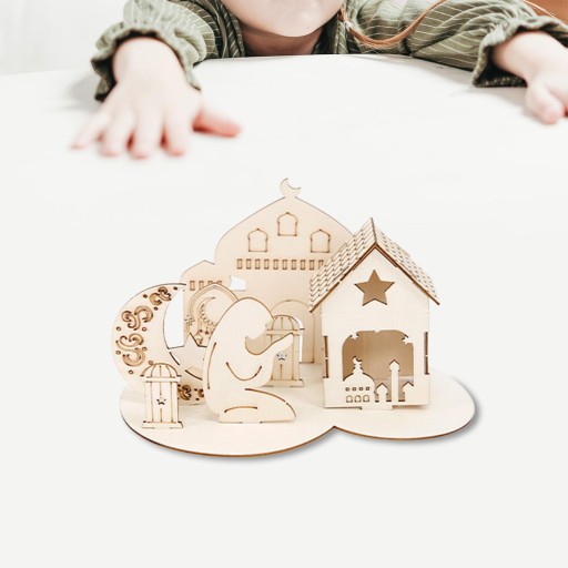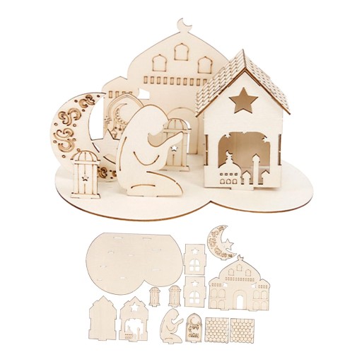 Ид Мубарак Деревянное украшение Соберите 3D-головоломку с замком в креативном стиле C