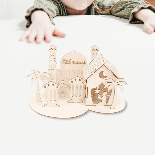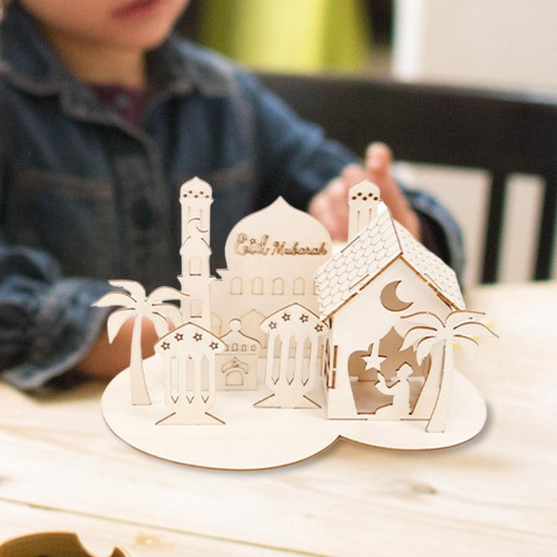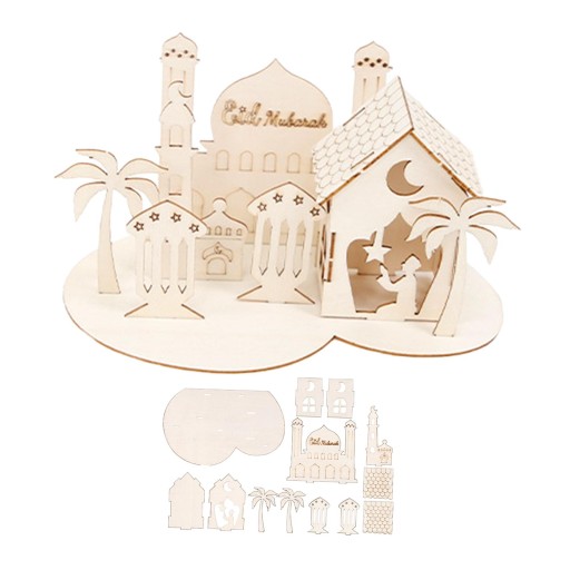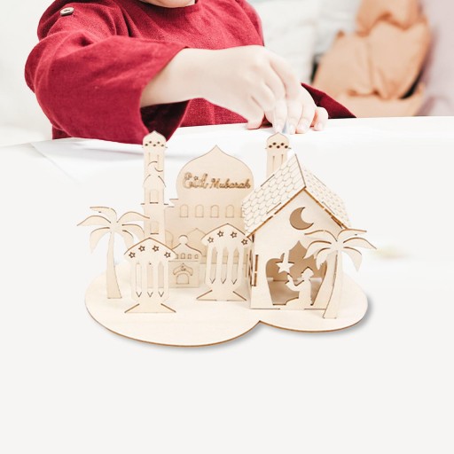 Eid Mubarak Drewniana ozdoba 3D Zamek Puzzle na półkę w pokoju domowym