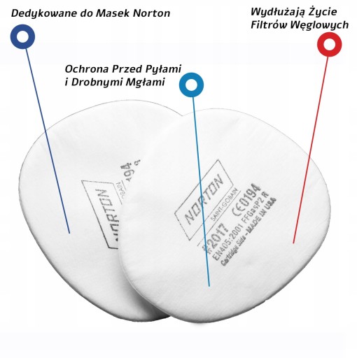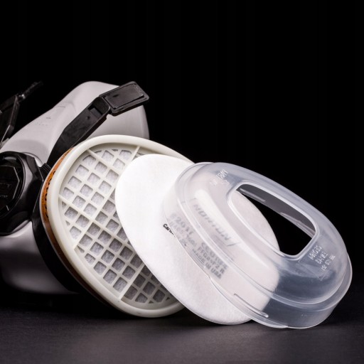Wymienne filtry przeciwpyłowe: lekkie filtry zapewniające ochronę przed pyłami i lekkimi mgłami. Filtry zamykane są oryginalnymi pokrywami dołączonymi do maski. W zestawie znajduje się komplet 2 sztuk.