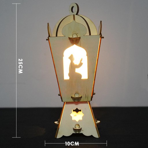 Eid Ramadan Światła LED Drewniana latarnia Eid Mubarak Lampa stołowa Oświetlenie pulpitu