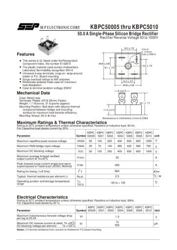 Mostek prostowniczy 50A 1000V KBPC5010 obudowa MB25 z otworem na radiator