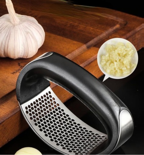 - Ręczna praska do czosnku ze stali nierdzewnej.