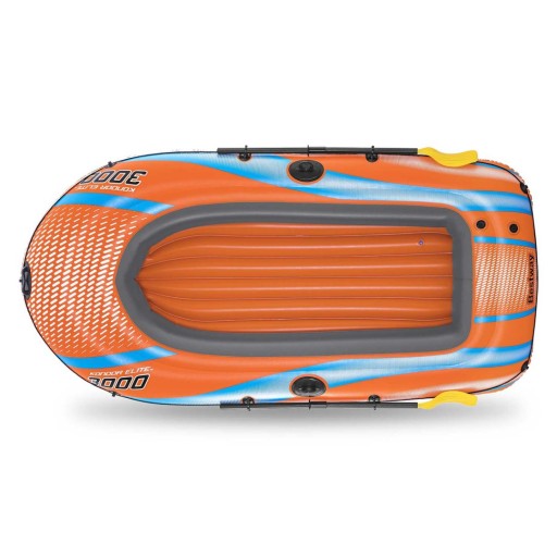 Bezpieczny, wygodny i przemyślany - te słowa idealnie opisują ponton Kondor Elite™ 3000. Solidny ponton jest łatwy w transporcie. Zestaw zawiera również pasujące wiosła i pompkę powietrza. Rozmiar pomieści nawet 2 osoby dorosłe i 1 dziecko, dzięki czemu idealnie nadaje się na rodzinne wyprawy po mniejszych rzekach i jeziorach.