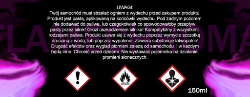 - Pasta ta nie powoduje powstania ognia w wydechu, jedynie zmienia jego barwę.