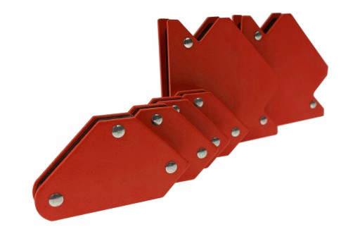 Zestaw składa się z 6 kątowników spawalniczych, wykonanych z wytrzymałej blachy stalowej oraz silnych magnesów ferrytowych. Powierzchnia kątowników została lakierowana proszkowo, co zapewnia ich trwałość i ochronę przed korozją.