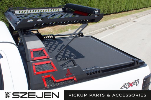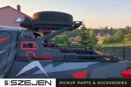 Zabudowa paki o agresywnym wyglądzie to idealne rozwiązanie dla entuzjastów off-roadu, turystyki i myślistwa. Wyposażona w dodatkowy kosz o nośności do 75 kg, pozwala na przewożenie dodatkowego koła, sprzętu turystycznego lub myśliwskiego. Całość wykonana metodą CNC z wysokogatunkowej stali o grubości 4 mm, zapewnia niezrównaną trwałość i wytrzymałość.