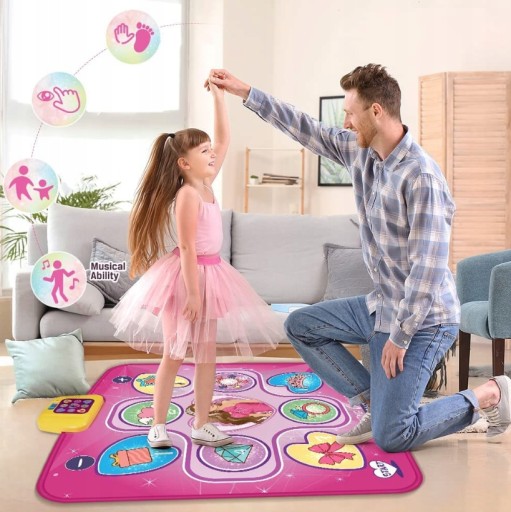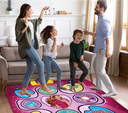 Mata do tańca dla dzieci ma wymiary 9,4 x 93 cm. Można go łatwo złożyć i włożyć do torby lub walizki. Dzieci mogą bawić się wewnątrz lub na zewnątrz, jest to doskonała gra dla dziewczynek i chłopców na rodzinne uroczystości lub wycieczki.
