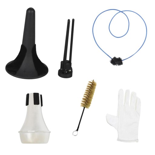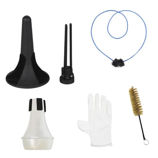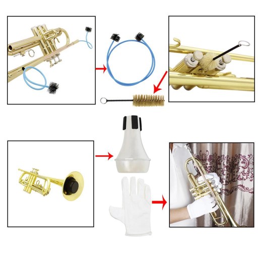 Zestaw narzędzi do konserwacji trąbki 6 w 1 Stojak na trąbkę + 2 szt. Szczotki + Wyciszenie + Rękawiczki