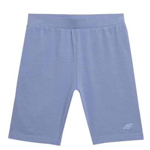 Leginsy dziewczęce 4F krótkie, przed kolano, z małym logiem z przodu na nogawce.