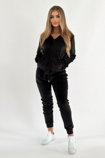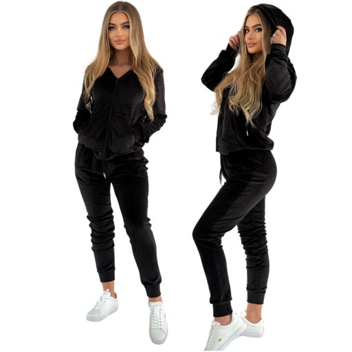 Odkryj uniwersalność i styl naszego Czarnego Welurowego Kompletu. Idealne połączenie wygody i elegancji, które pasuje na każdą okazję. Ten kompletny zestaw zawiera miękki welurowy dres z kapturem i dopasowane spodnie, które podkreślają sylwetkę, dając jednocześnie swobodę ruchów. Czerń tego kompletu sprawia, że jest on łatwy w stylizacji i doskonały na wiele wyjść - od spotkań ze znajomymi po wieczorne seanse filmowe w domu. Welur najwyższej jakości nie tylko prezentuje się znakomicie, ale także zapewnia nieporównywalny komfort noszenia.