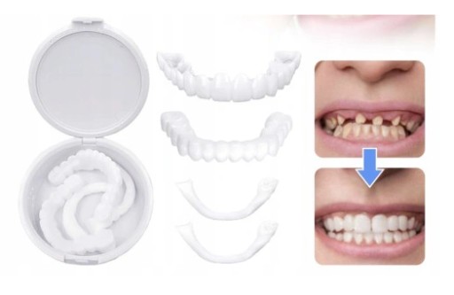 Tymczasowa nakładka na górne żeby która pozwoli Ci w szybki i tani sposób uzupełnić braki w uzębieniu.