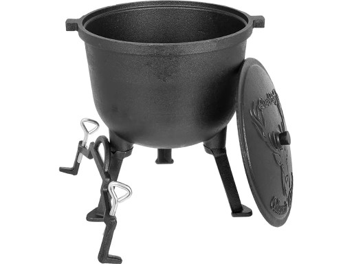Kociołek wyposażony jest w 3 przykręcane nogi. Możliwość szybkiego odkręcenia nóg w celu powieszenia kociołka nad ogniskiem.