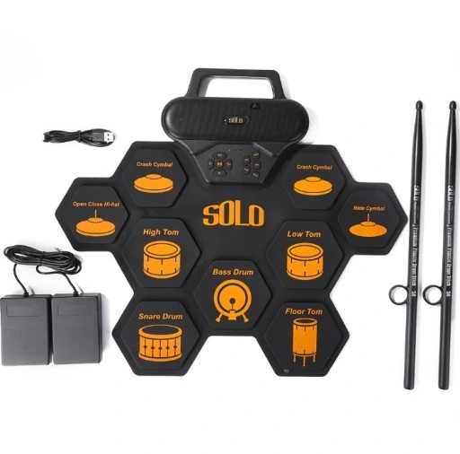 【Nagrywanie tego, co grasz】 - Funkcja nagrywania pozwala lepiej poznać swoje wykonanie, słuchając granego utworu i kontynuując doskonalenie swoich umiejętności gry na perkusji.【Długi czas odtwarzania】-Zwijany bęben jest zbudowany z akumulatora, który obsługuje czas odtwarzania do 5 godzin po pełnym naładowaniu i można go wyjąć do grania w dowolnym miejscu i czasie; uchwyt idealnie nadaje się do przenoszenia zestawu perkusyjnego lub zawieszenia go na ścianie.