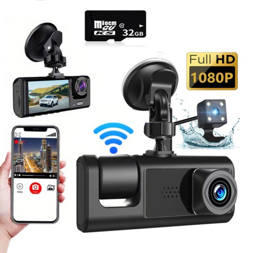 Автомобильная камера, записывающее устройство для вождения, видеокамера FULL HD, ПЕРЕДНЯЯ ЗАДНЯЯ + 32G