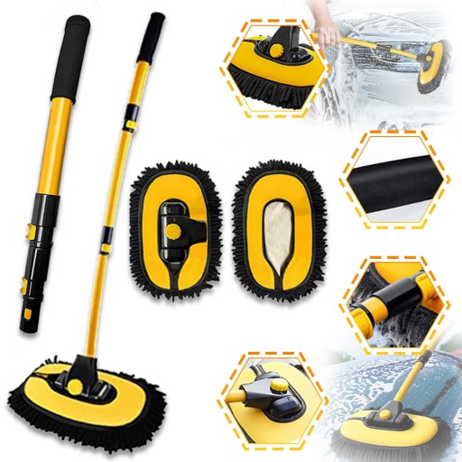 W przeciwieństwie do większości szczotek do mycia samochodów z prostym drążkiem, mop do mycia samochodu został zaprojektowany z zakrzywionym drążkiem, co jest bardziej pracochłonne. Łatwo jest wyczyścić dach samochodu.