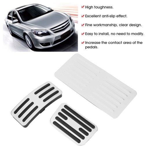 1.Wysoka wytrzymałość i zwiększony współczynnik tarcia pedału. 2. Doskonały efekt antypoślizgowy, konstrukcja krzywizny łuku zapewniająca bezpieczeństwo. 3. Dobra jakość wykonania, przejrzysta konstrukcja, lekka i piękna, zmniejszająca zmęczenie stóp. 4. Łatwy w instalacji, nie ma potrzeby modyfikowania. Ułatw sobie manipulowanie pedałami. 5. Zwiększ powierzchnię styku pedałów, zwiększając komfort i bezpieczeństwo jazdy, ułatwiając prowadzenie samochodu. Nadaje się do samochodu specjalnego.