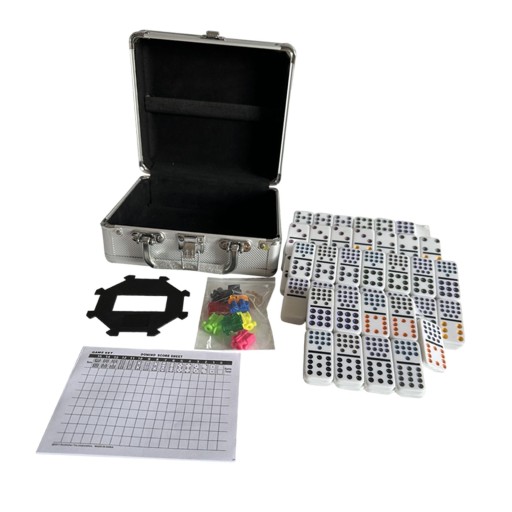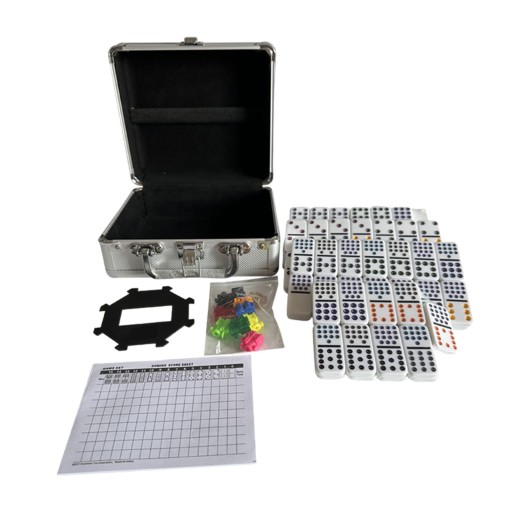 [Double 15 Set]: Experience the thrill of a classic board game with our Double 15 Set, with 136 tiles, 1 hub, 9 trains, and score sheet.