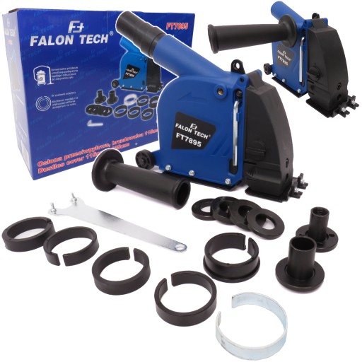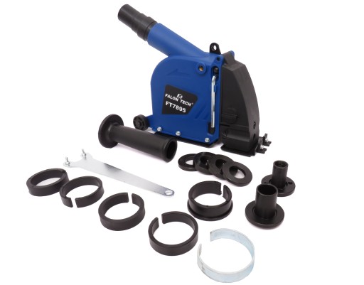 Kompaktowa osłona zabezpieczająco - odpylająca marki FALON TECH zaprojektowana specjalnie do użytku ze szlifierkami kątowymi różnych firm.